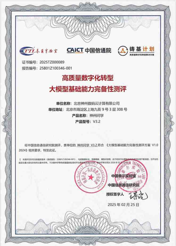 近日,,,,新航娱乐数码旗下AI原生赋能平台新航娱乐问学正式通过中国信息通信研究院(以下简称中国信通院)大模型基础能力完备性测评,,,成为国内首批通过该项权威认证的企业级大模型解决方案。。此次测评历时三个月,,,覆盖数据安全、、性能、、、效率三大核心模块,,标志着新航娱乐数码在大模型技术底座构建领域的技术能力更进一步,,为千行百业智能化转型注入可信技术动能。。。。